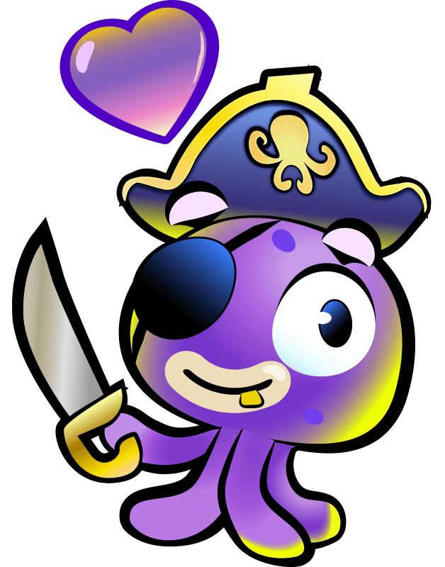 While exploring the Seven Seas in search of legendary loot, tremendous treasure and bountiful booty, your merry band of pirates happened upon a mysterious octopus-shaped island. As these things go, the island was cursed — but little did you know that a similar fate would soon befall your plundering party as well! The evil god of the island turned your whole pirate crew into octopuses and captured them! Or was it octopi? There was no time to ponder proper plural permutations, because you, their courageous captain, were now a cephalopod too!